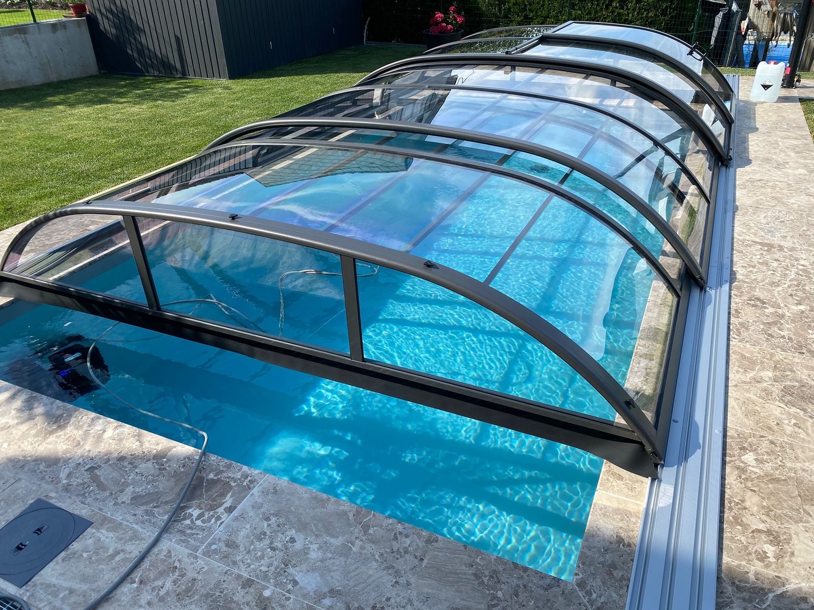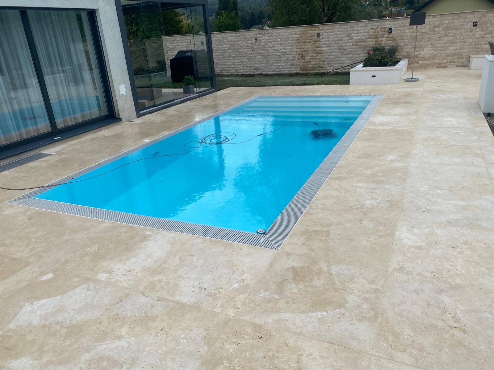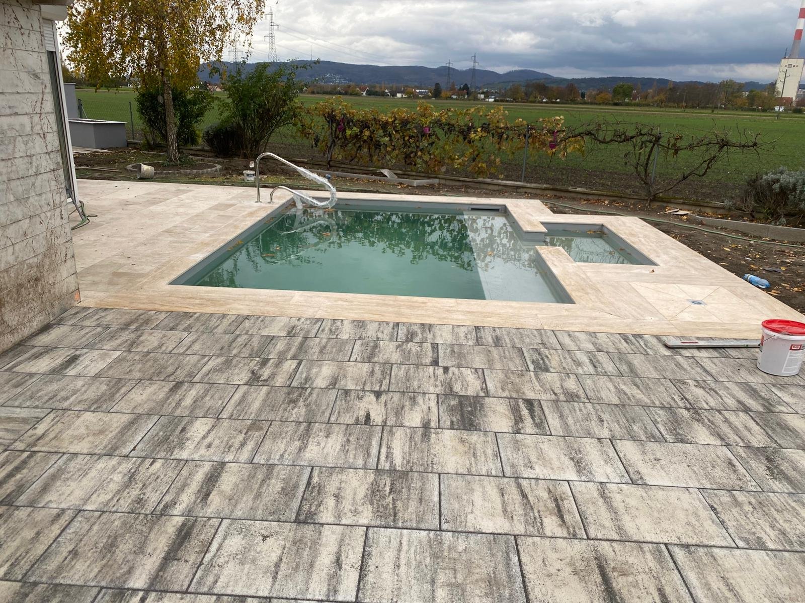 - Stufenanlagen, Randsteine, Technikschacht und Zugang zum Poolbereich