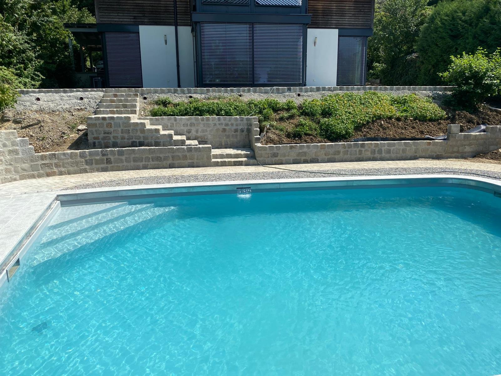 Unsere Leistungen in diesen Projekten reichen von Aushub- und Fundamentarbeiten über die Herstellung der Becken und Randbereiche bis hin zu Pflasterungen, Terrassenflächen und Wegen im Umfeld der Poolanlagen.